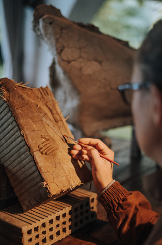 Roberta Busato war im Oktober 2021 in der Villa Arnica als Artist in Residence zu Gast. Die 1976 in Verona geborene und in Mantova lebende Bildhauerin hat an der Akademie von Carrara studiert. Bekannt wurde sie für Skulpturen aus ungebranntem Lehm. Die Wahl dieses natürlichen, geschichts- und symbolträchtigen Materials und die Verfeinerung eines technischen und kreativen Verfahrens zur Zerlegung und Neuzusammensetzung der Form stellen die beiden grundlegenden Momente ihrer, zutiefst poetischen, künstlerischen Arbeit dar.