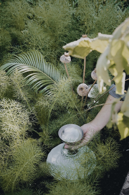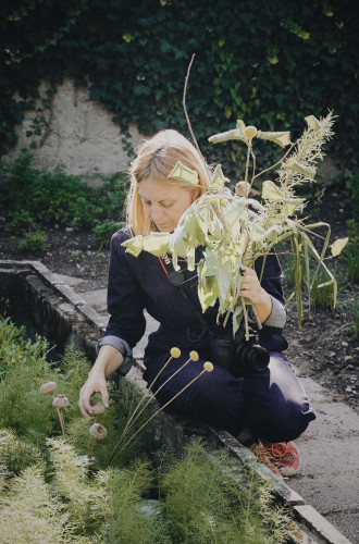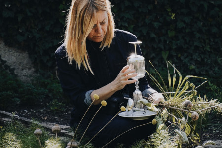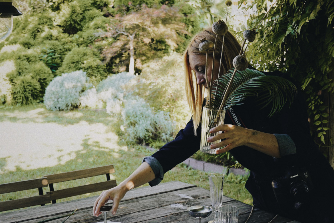 Bettazzi primarily works with installations and photography and has exhibited her work in numerous shows, including at the Galleria Nazionale in Rome. During her stay at Villa Arnica, she drew inspiration from the Villas atmosphere and its expansive garden, focusing particularly on the coexistence of natural elements with everyday objects. Her photographs are thus closely tied to the location, depicting still lifes created through the combination and rearrangement of objects from the villa and garden. For example, Bettazzi arranged furniture pieces with branches, leaves, and flowers, showcasing them in the beds of the Arnica Acker.
