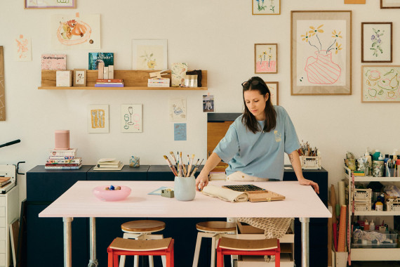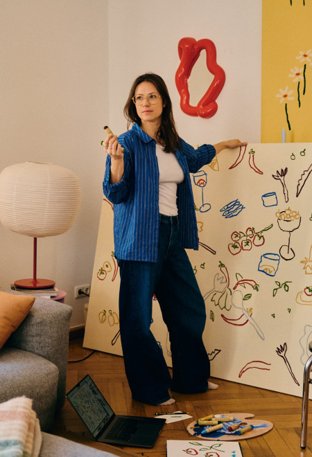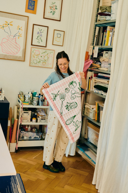 Her creative signature is playful yet precise, with a special love for the imperfect. Inspired by nature and the plants surrounding her studio in Munich’s Westend, Steffi develops her drawings into fabric designs and distinctive patterns. Her work appears on textiles, magazine covers, products and even on window displays.