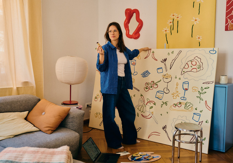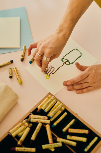 Alongside her design practice, she creates individual artworks and commissioned pieces. She also leads artistic workshops, sharing the freedom and joy of working with illustration.