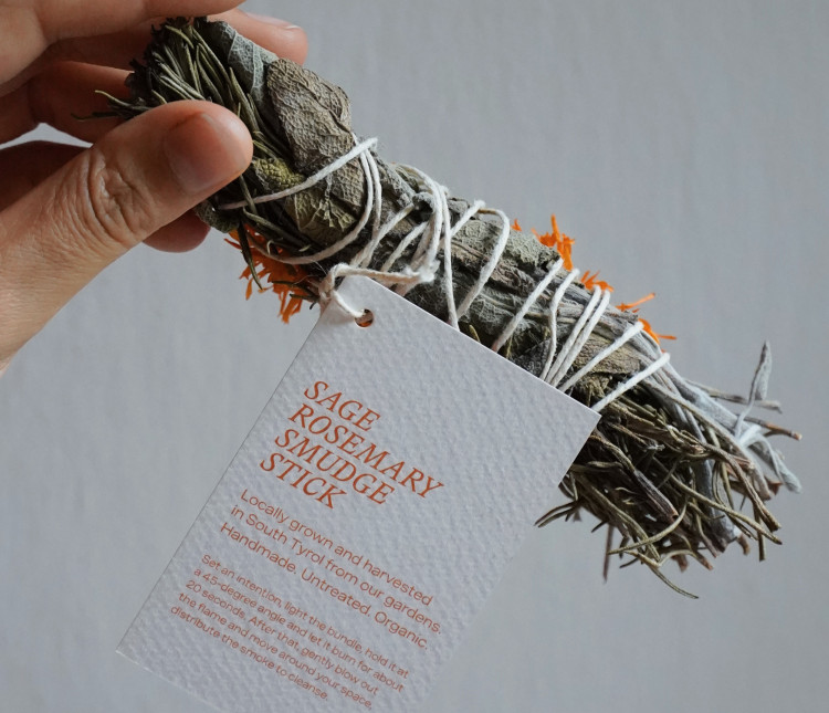 Lo smudgestick a base di rosmarino, salvia e calendula purifica l’ambiente e ti apre alle energie positive. Coltivato localmente in Alto Adige e raccolto nei nostri giardini.